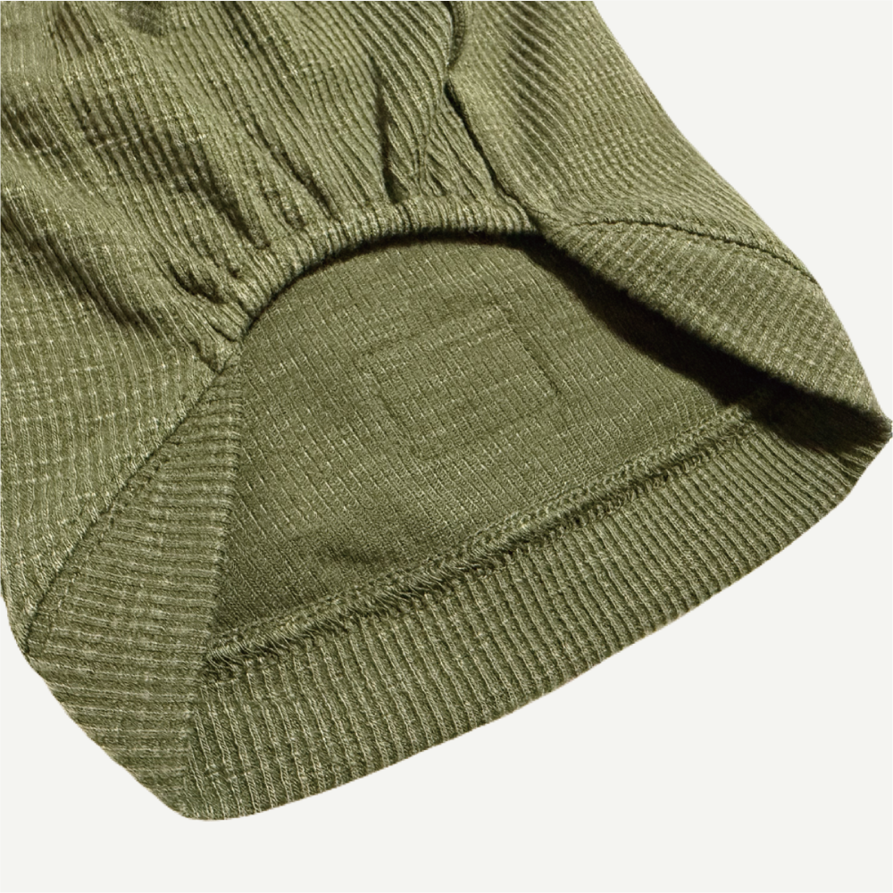 柔らかく伸縮性のあるリブ生地を使用し、程よくフィット。